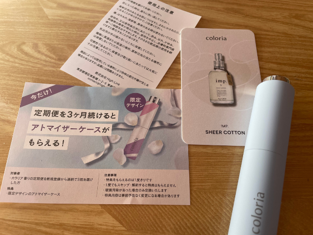 この記事は、実際にカラリアのCOLORIA 香りの定期便のサービスを利用した体験談です。
